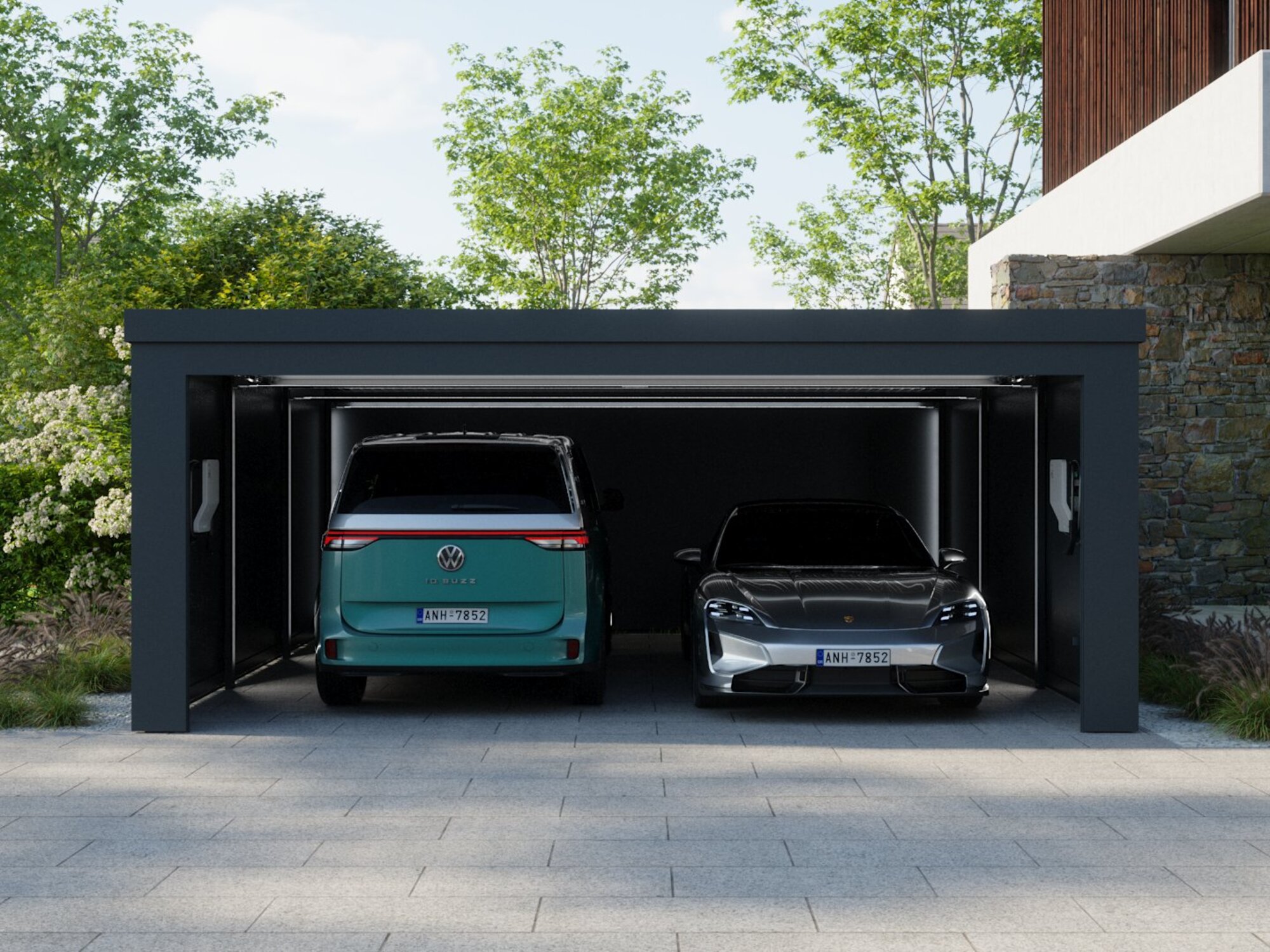 Sie suchen nach einer eleganten und cleveren Komplett-Garagen-Lösung zum Laden Ihrer E-Autos, die zu Ihrem Lifestyle passt? Mit unserer Energiegarage sind Sie Ihrer Zeit einen entscheidenden Schritt voraus: Entscheiden Sie sich bei unserem Doppelgaragensystem mit integrierter PV-Anlage und Speicher für den Anbau an Ihr Gebäude oder für eine freistehende Variante und wählen Sie aus diversen modernen Designs in Holz-, Beton- oder Rostoptik. Unsere Energiegaragen sind architektonische Highlights, die Ihr gesamtes Anwesen auf eine stilvolle Art und Weise aufwerten.